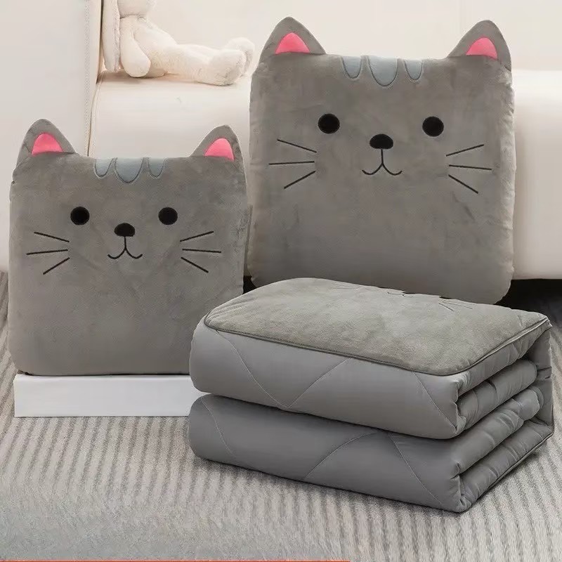 หมอนผ้าห่ม แมวเทา